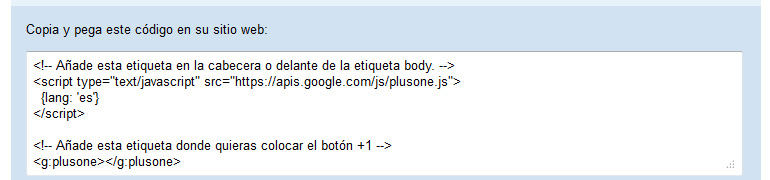 Recuerda que tienes que pegar las dos partes del código para que funcione, una en la cabecera <head> y el otro donde quieras que aparezca tu botón +1